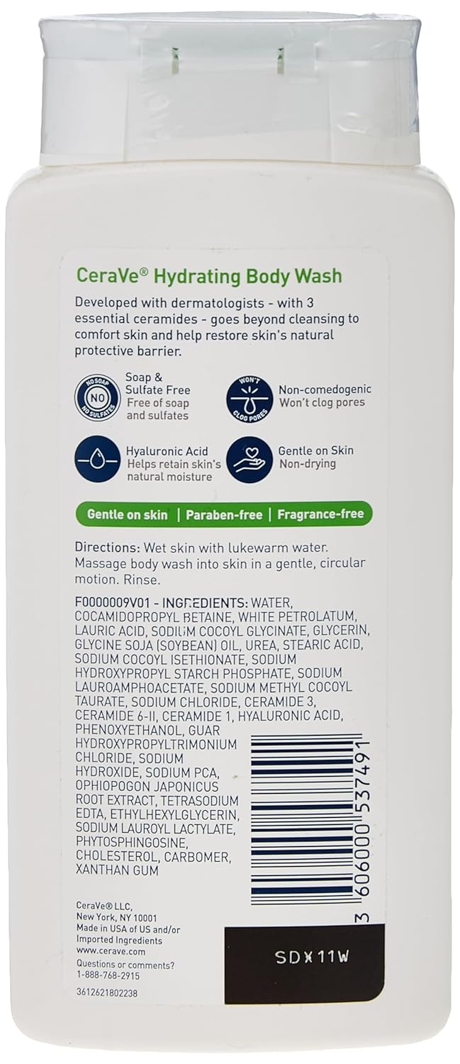 - [ SKIN CARE FOR DRY SKIN ] Massage CeraVe Hydrating Body Wash into skin in gentle, circular motions with a washcloth or shower loofah. Can be paired with CeraVe Moisturizing Cream to lock in moisture.