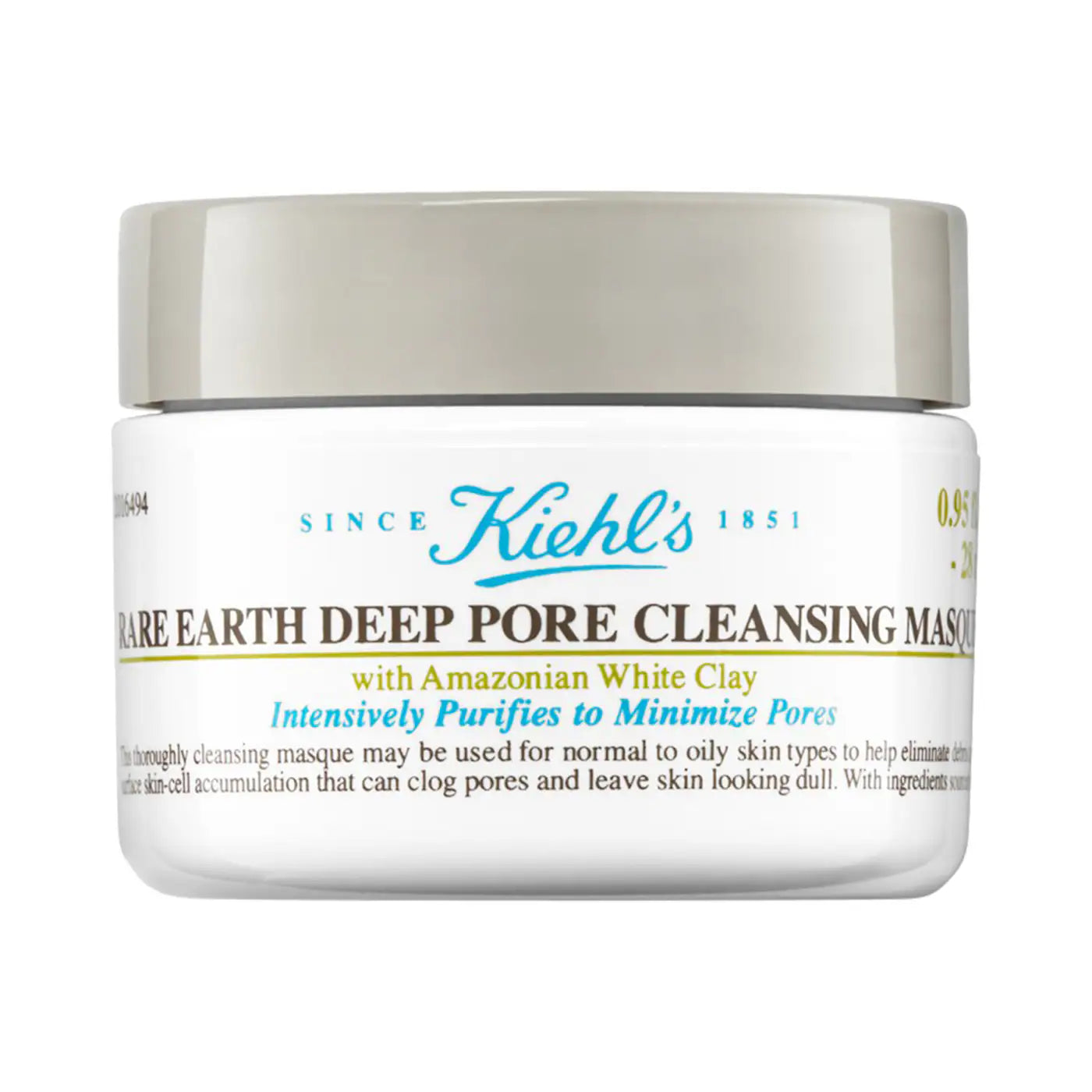 An efficacious pore minimizing face mask formulated with Fairly Traded Amazonian White Clay and Aloe Barbadensis. Kiehl's detoxifying and purifying clay face mask helps reduce excess oil and minimize the look of pores to leave skin visibly more refined.