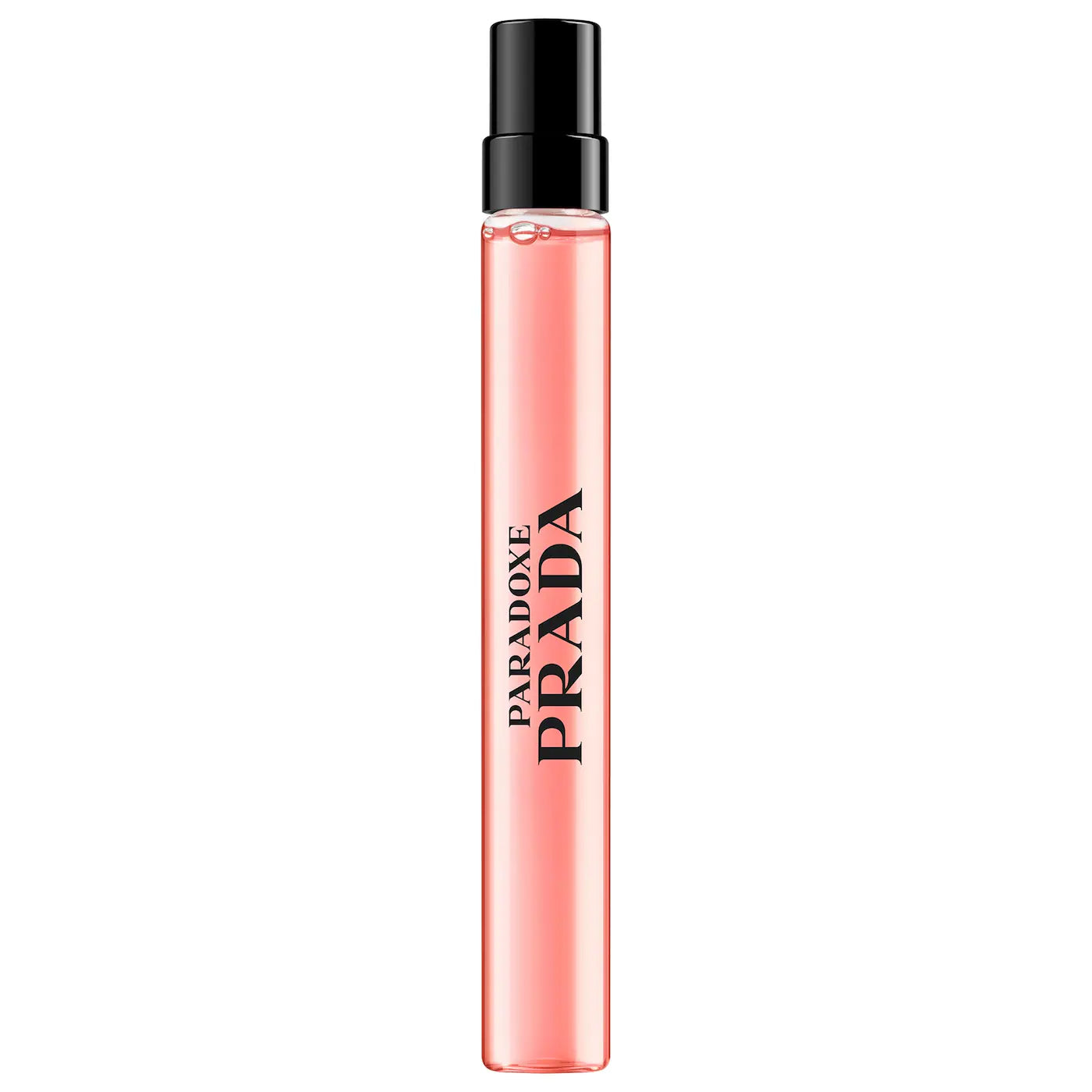 About the Bottle: This perfume bottle is an expression of the House’s essence of reinvention and predilection for contrasts. In a shift from the traditional perfume bottle architecture, the flacon is minimal and delicate at first glance, inspired by the original, iconic Prada triangle logo, disruptively designed to rest on its side. The Prada coat of arms logo contrasts with the deep pink color of the fragrance. The bottle is finished with ‘Paradoxe Intense’ on its top chamfer.