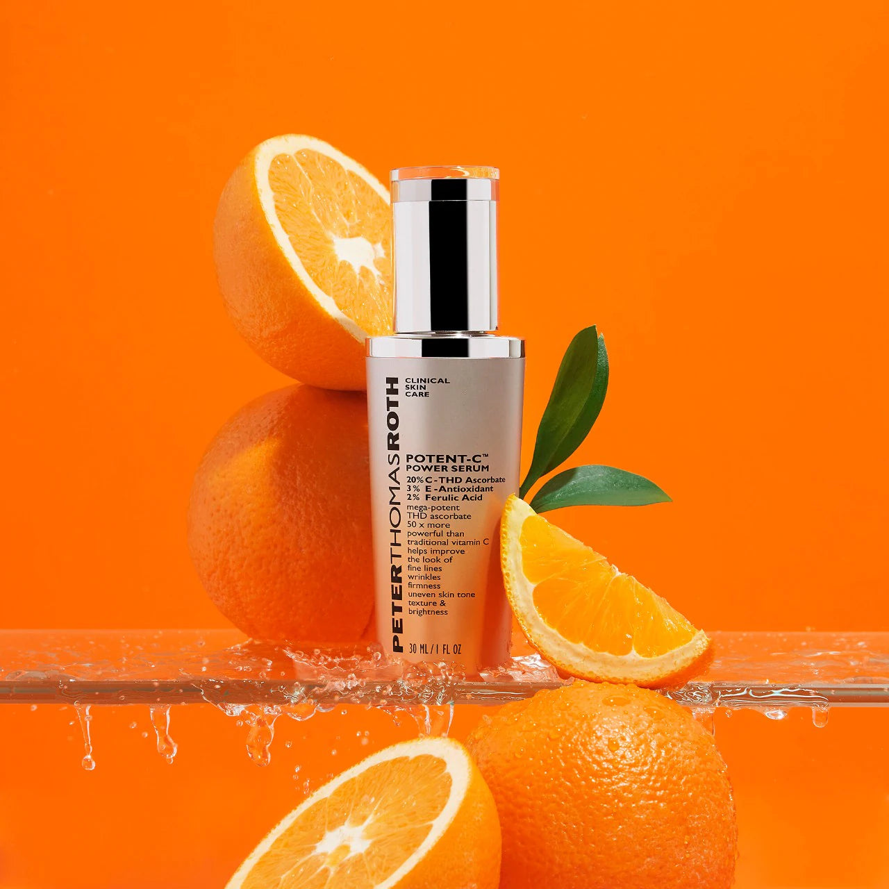 A serum with 20% THD ascorbate—a mega-potent, ultra-stable ingredient 50 times more powerful than traditional vitamin C—that visibly brightens skin.