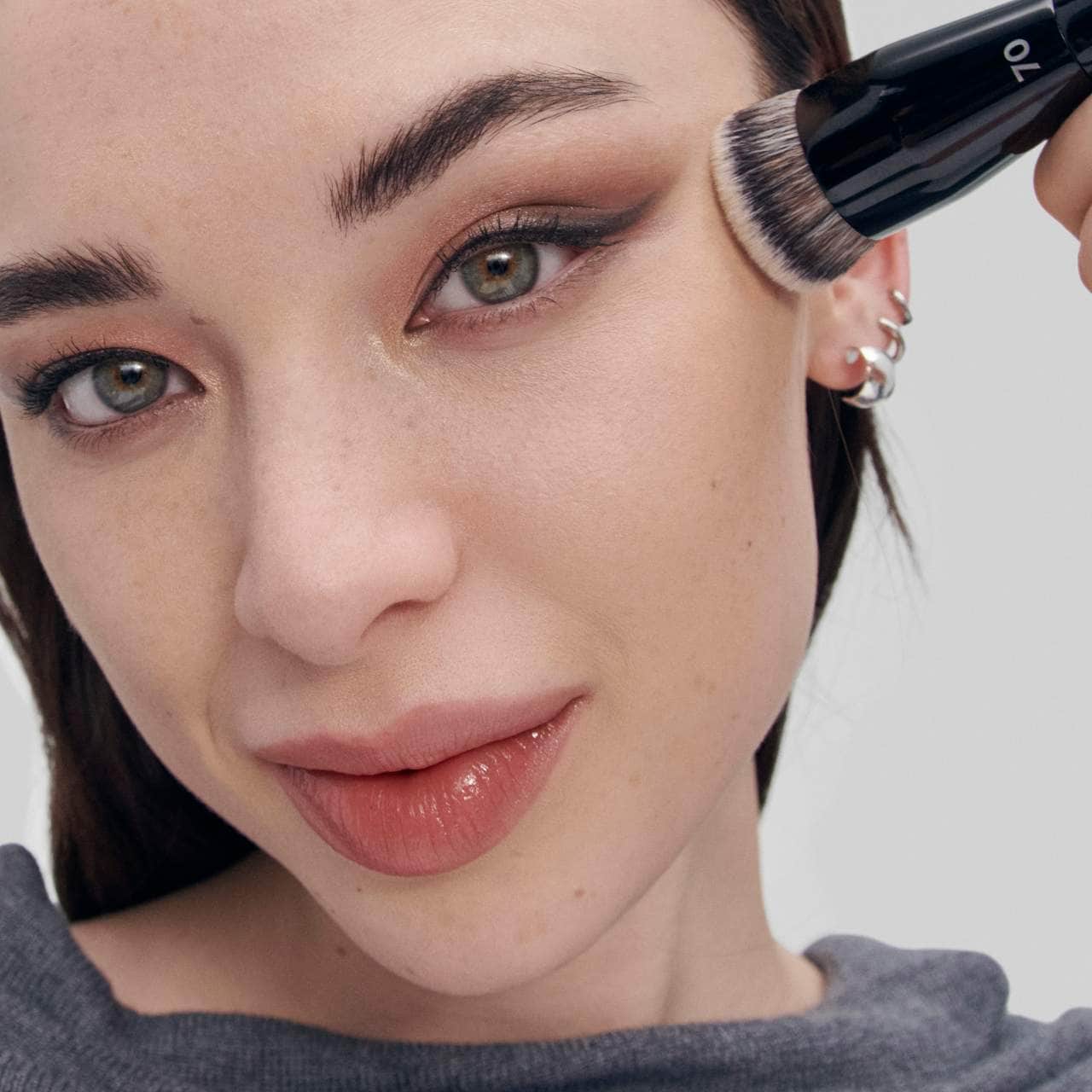 A super densely packed brush with soft short bristles that buffs foundation into skin for instant coverage.