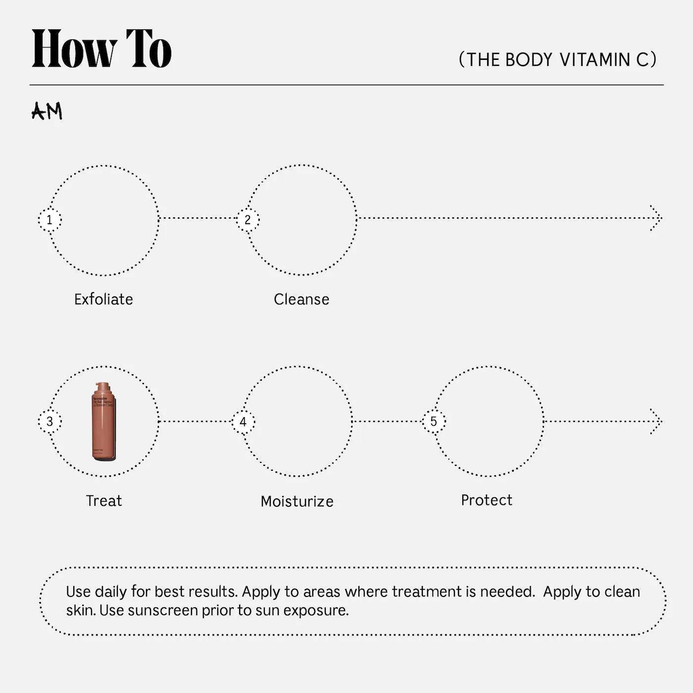 A daily serum with a clinical concentration of vitamin C (THD ascorbate) to boost radiance, reduce the look of spots, and visibly even skin.