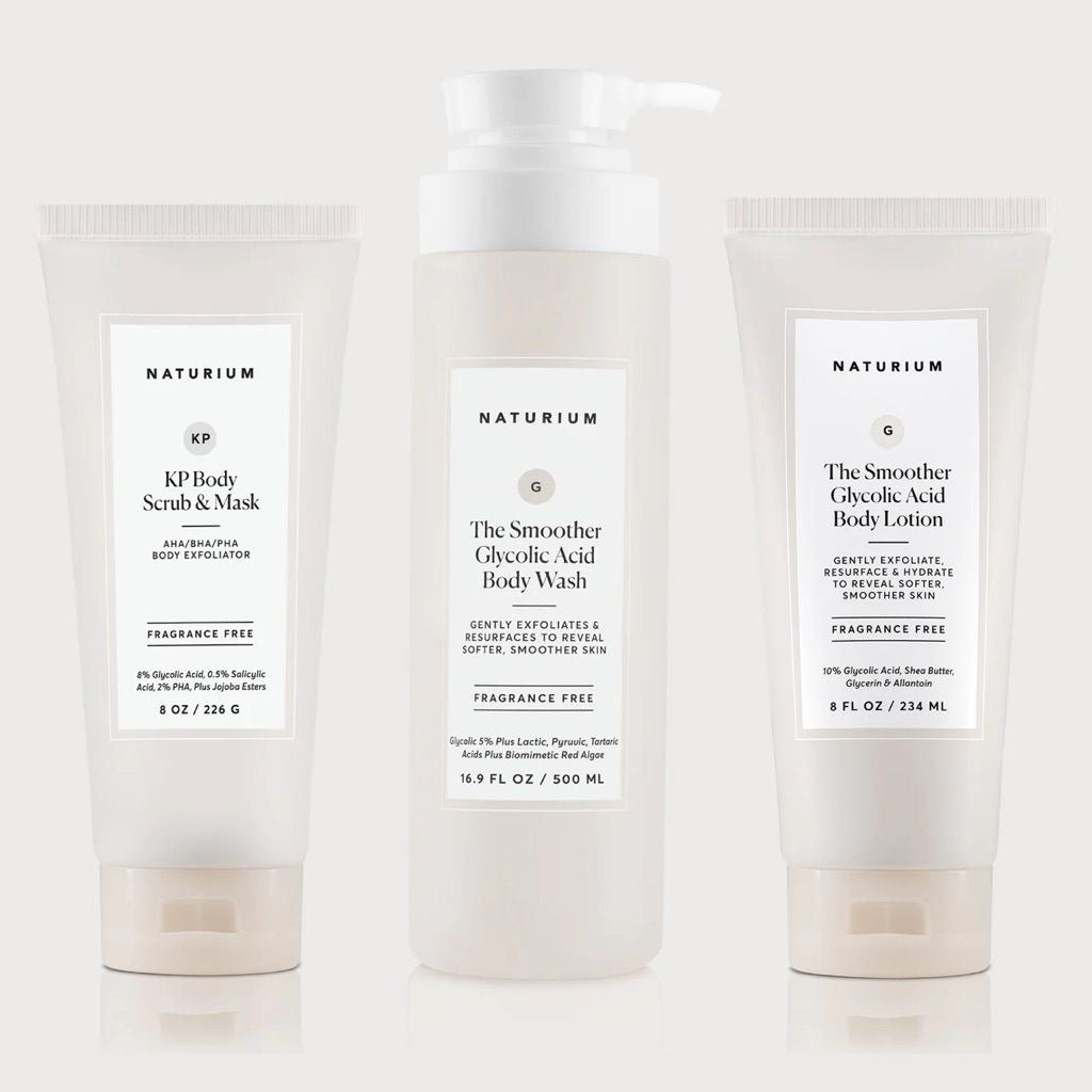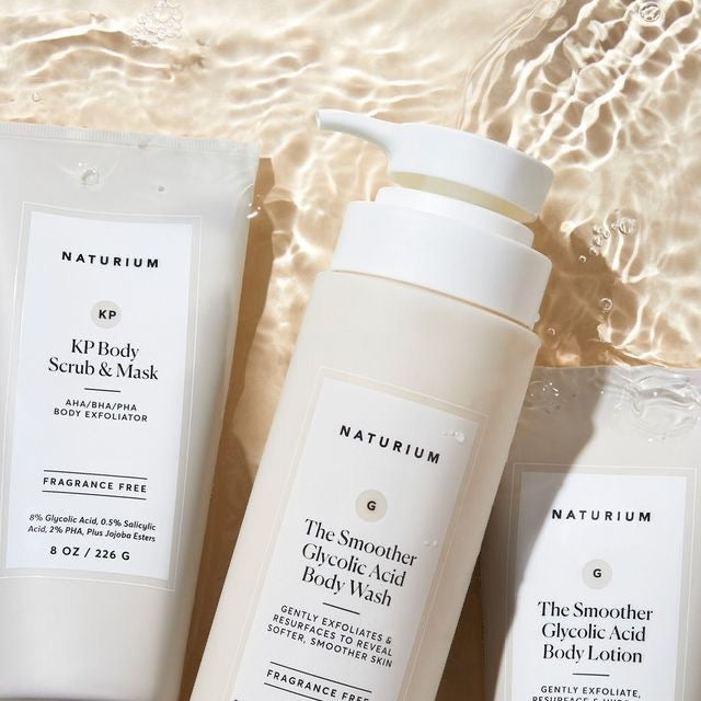 Our glycolic acid body lotion exfoliates and resurfaces to reveal softer skin. Formulated with high-purity 10% glycolic acid, this lotion effectively works to smooth texture and brighten tone, decreasing the appearance of dark spots. Plus, our nourishing shea butter helps boost skin's moisture, revealing healthier looking skin.