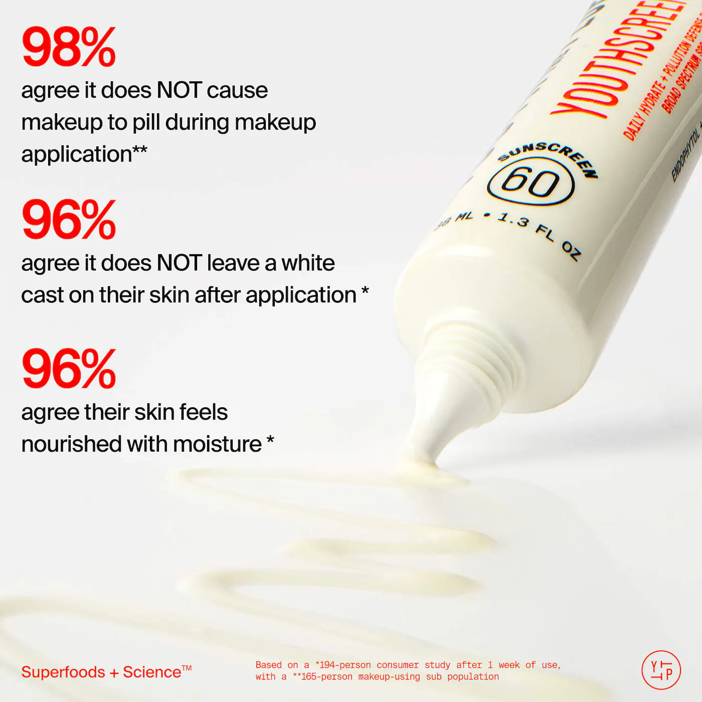 Youthscreen™ Daily Hydration + Pollution Defense Invisible Broad Spectrum Sunscreen SPF 60